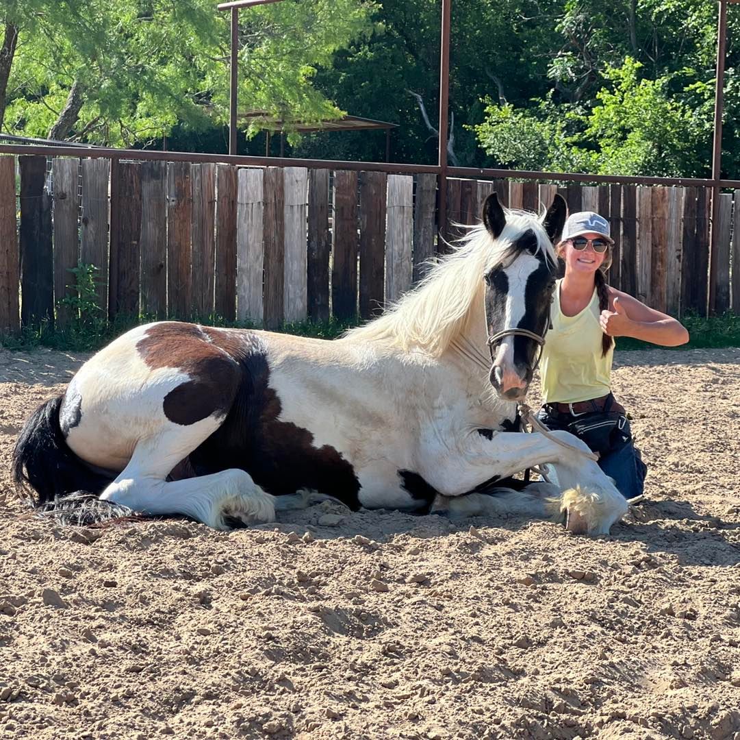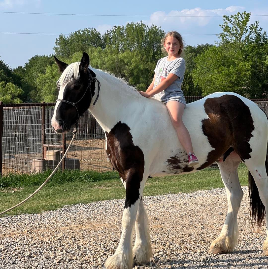 Gypsy is the sweetest gelding, he loves attention, gets along great in mixed herds, super easy to catch. My daughter started him and has been riding him for several months and he has been exposed to all our crazy stuff and more. He reins around very well, moves off leg, gets gates, carries flag, tarp, ropes dummy and slow cattle, tracks the cows, and rides down road. Has never offered to buck, good with farrier, no spook, has been around dogs and all types of animals. Rides western, English and bare back. Great on trails, will cross anything. Loads, hauls and bathes well. He is super nice and just had his teeth floated.