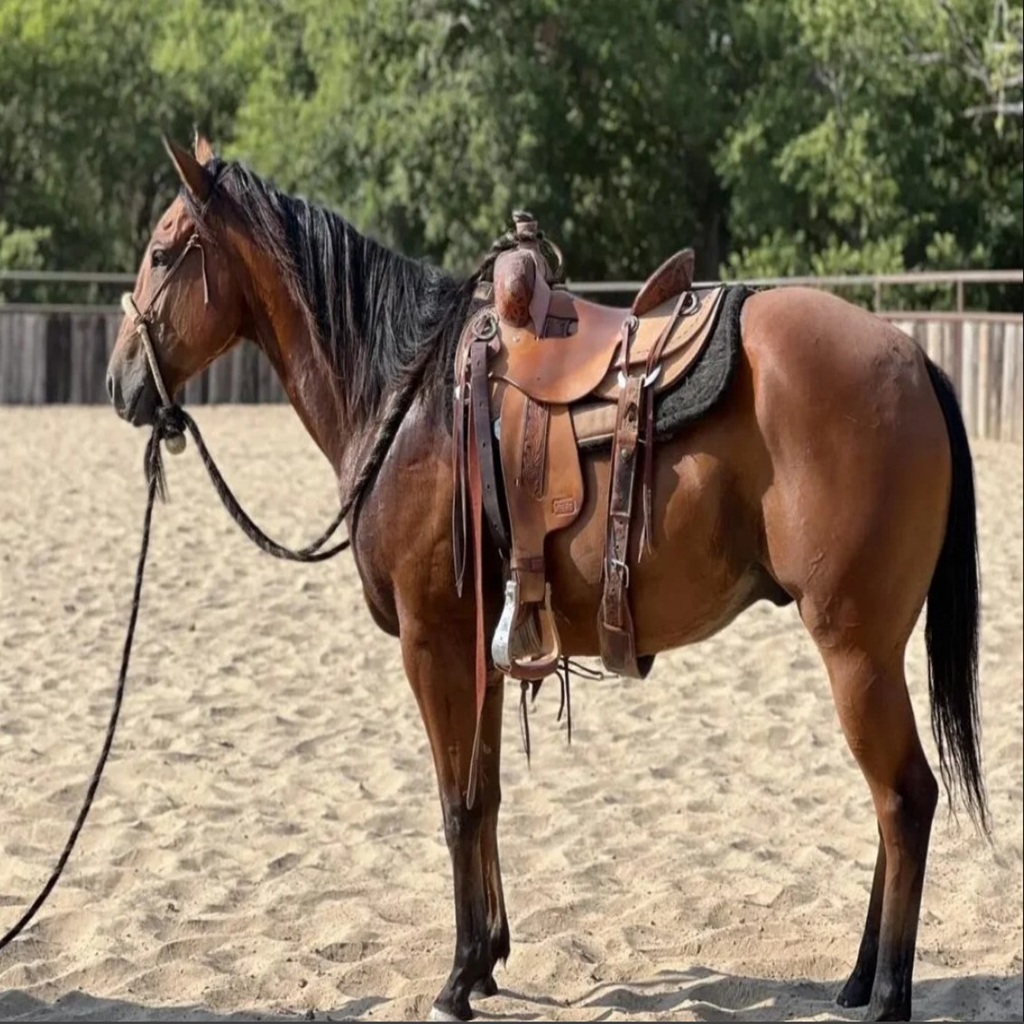 Out of registered AQHA stock (DNA confirmed), he is versatile and willing — great on trails, tracks cattle, ropes the dummy, and has a strong, reliable stop.